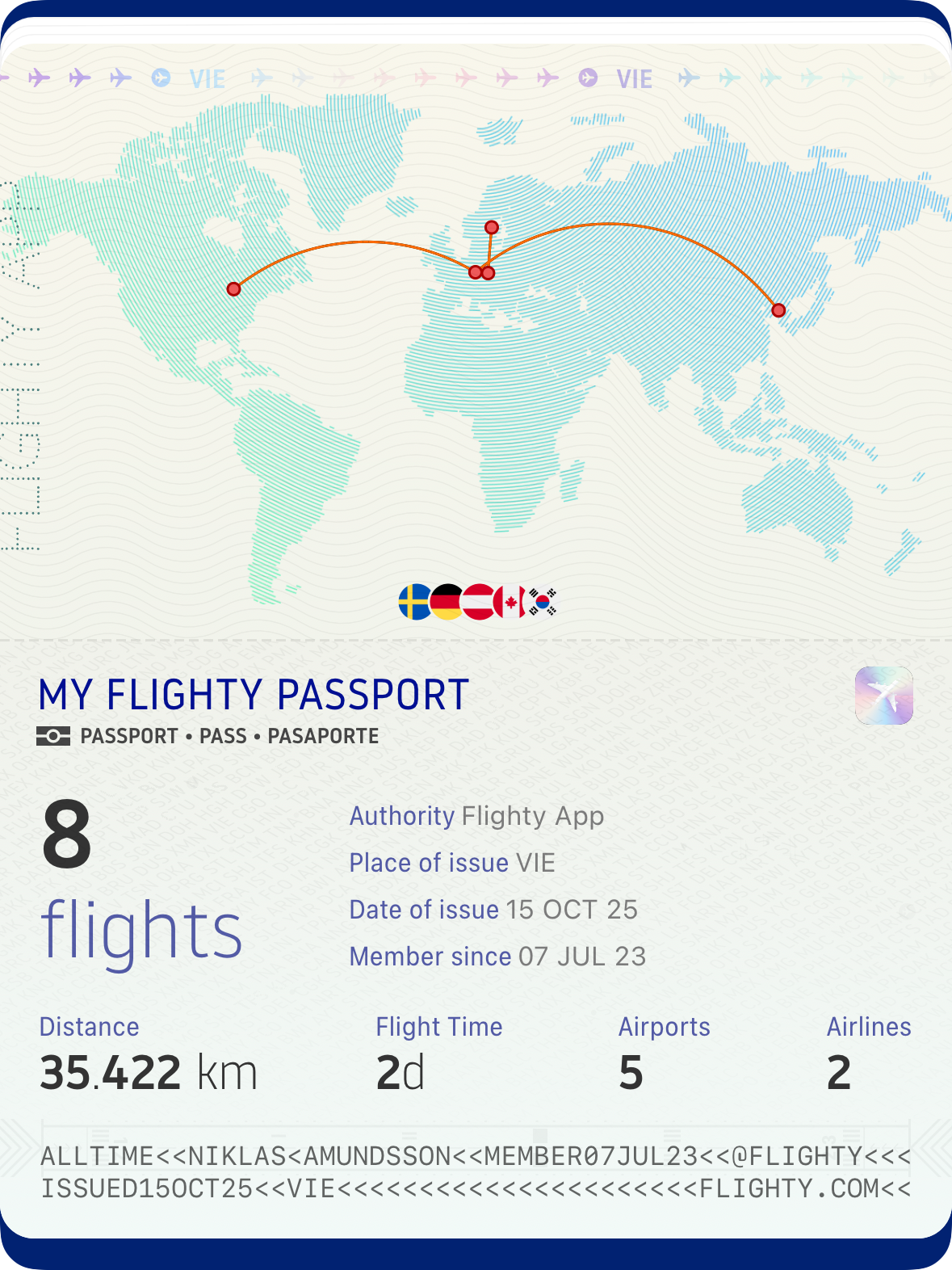 For the flight history image I used the flight tracker Flighty on iOS. It is by far the best travel companion when traveling by plane.